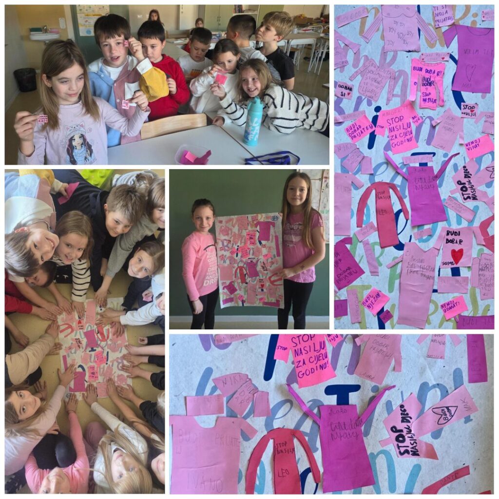 Poseban naglasak stavljen je na razvijanje empatije, uvažavanja različitosti i odgovornosti svakog pojedinca za stvaranje sigurnog razrednog okruženja. Učenici su pisali lijepe i ohrabrujuće poruke poput „Budi dobar prijatelj“, „Stop nasilju“, „Govori lijepe riječi“ i „Ne udaraj“, a zatim su zajednički izradili plakat od ružičastih majica – simbol solidarnosti i zajedništva.