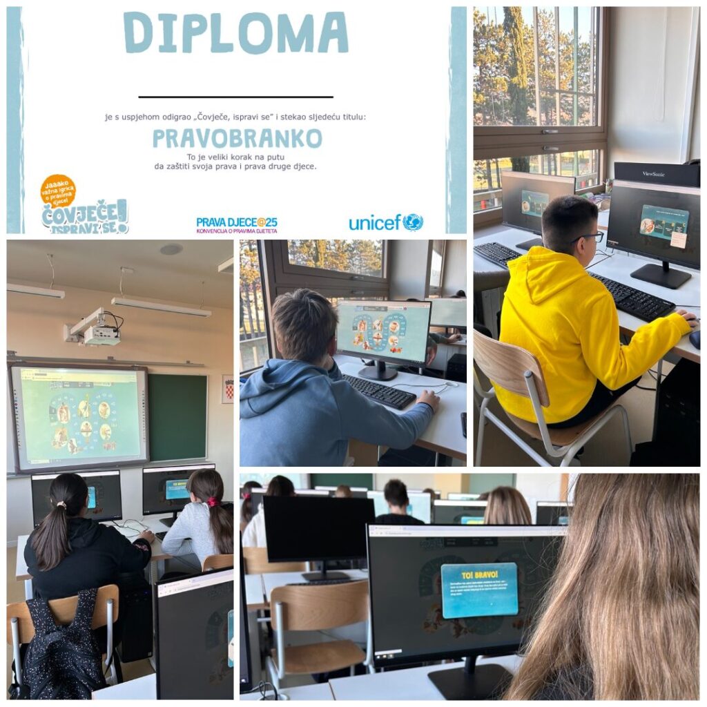 Učenici 5.a i 5.b na satovima razrednog odjela upoznali su se sa svojim pravima, ali i dužnostima kroz Konvenciju o pravima djeteta, a na satu informatike provjerili su koliko tog su zapamtili o dječjim pravima kroz rješavanje zadataka igrice „Čovječe, ispravi se“. Kroz igricu ponovili su koja  prava pripadaju njima i svakom drugom djetetu na svijetu. Otkrili su zašto su prava jako važna, što su potrebe, a što želje, kakva sve prava postoje i još puno toga.