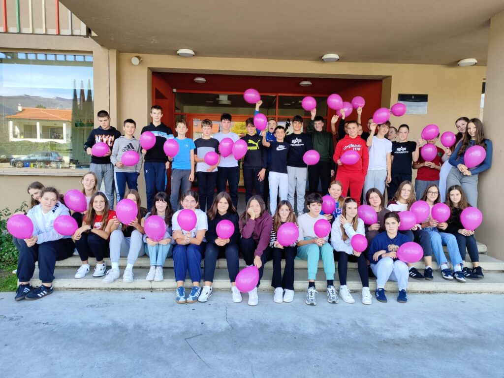 U utorak, 14. listopada u našoj školi obilježili smo Dan ružičaste vrpce kako bismo podigli svijest o važnosti redovitih pregleda i brige o zdravlju. Uz letak „Mama, budi zdrava” na Satu razrednika razgovarali smo o važnosti ranog otkrivanja bolesti i raka. Naučili smo načine na koje svatko od nas može potaknuti svoje bližnje da brinu o sebi. Mi, učenici osmih razreda, slikali smo se s ružičastim balonima kako bismo obilježili ovaj važan dan te pokazali podršku svim ženama koje se bore s ovom bolešću. Našom aktivnošću želimo poručiti da je zdravlje na prvom mjestu te da jedan pregled može spasiti život.